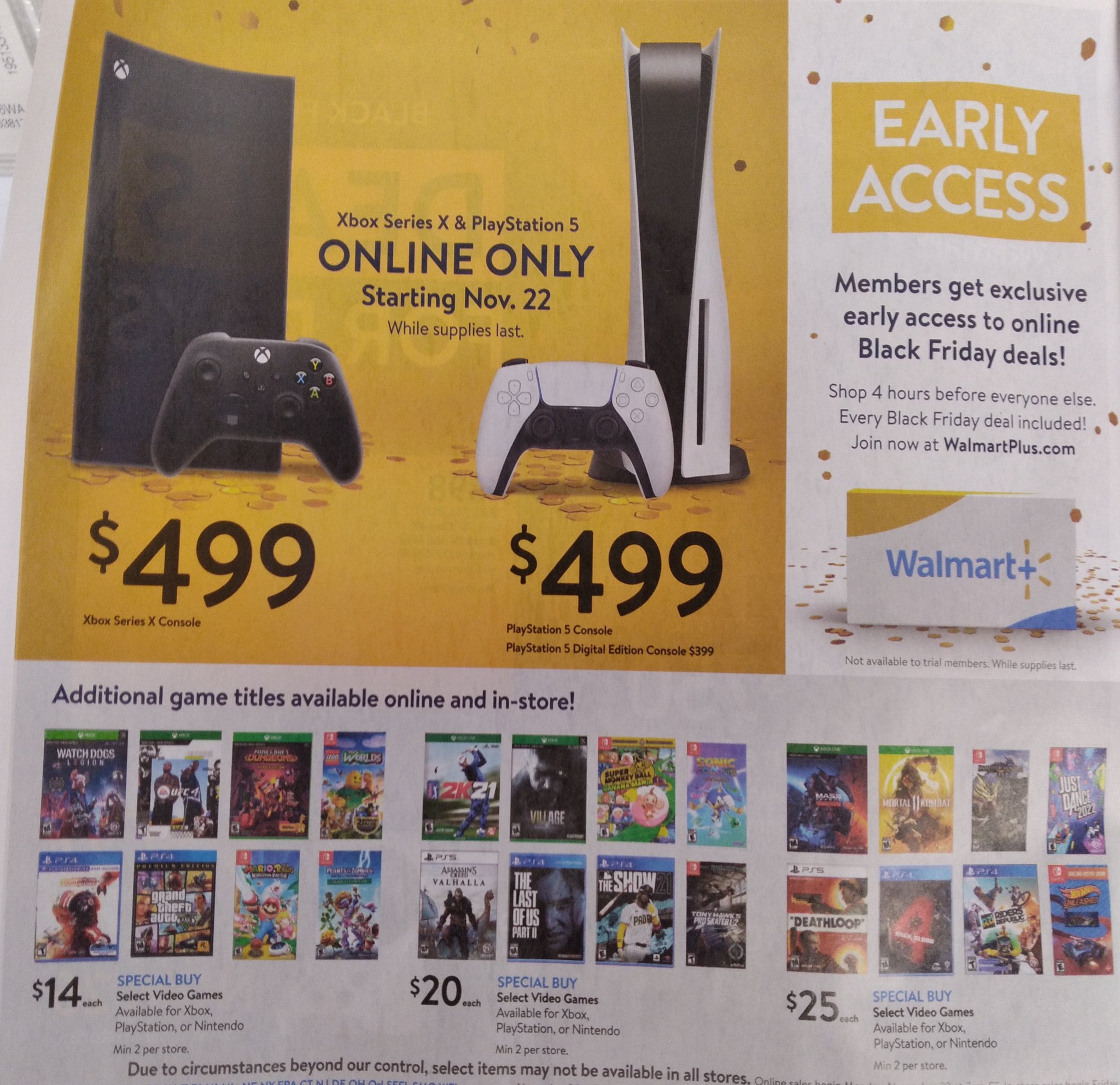 Wario64 On Twitter Walmart Black Friday Ad Nov 22 Ps5 Xsx Consoles Online Only 35 Guardians Of The Galaxy Select 1st Party Switch Games 25 Me Trilogy Back 4 Blood Deathloop Mh Rise